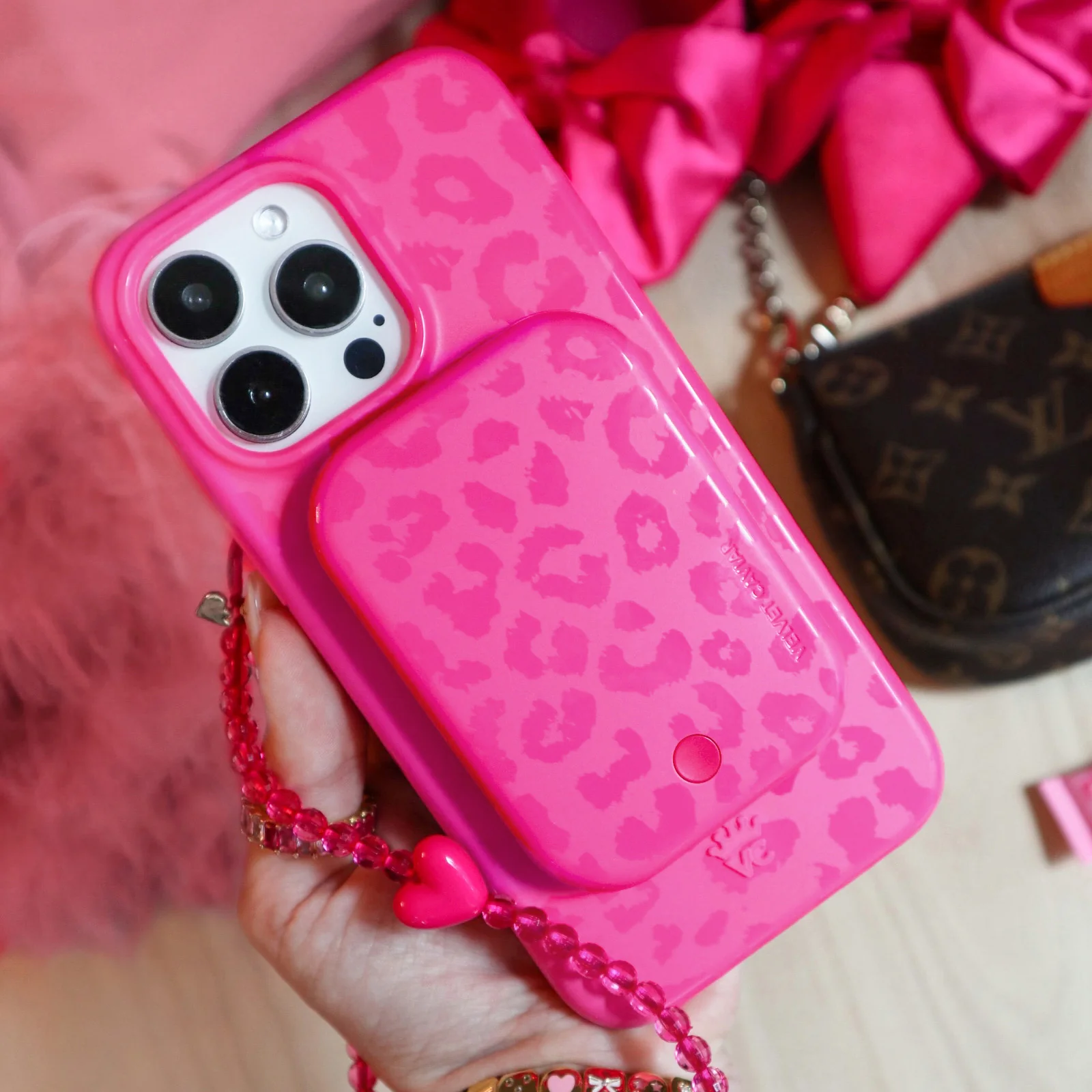 This Collector's Edition MagSafe case celebrates our Founder, Michelle's birthday! This phone case features glossy fuchsia leopard spots on a monochromatic matte base.