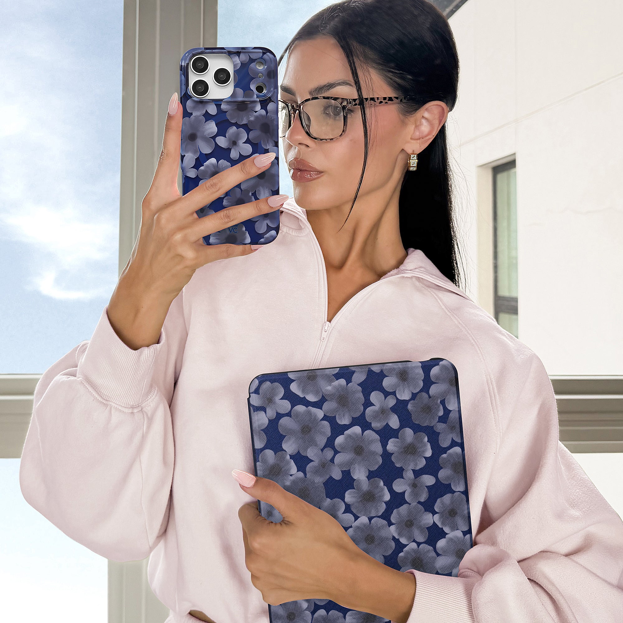 Elevate your everyday with this folio style iPad case featuring a Vegan Saffiano Leather exterior, 3 adjustable stand settings, and a charging compatible stylus holder*.