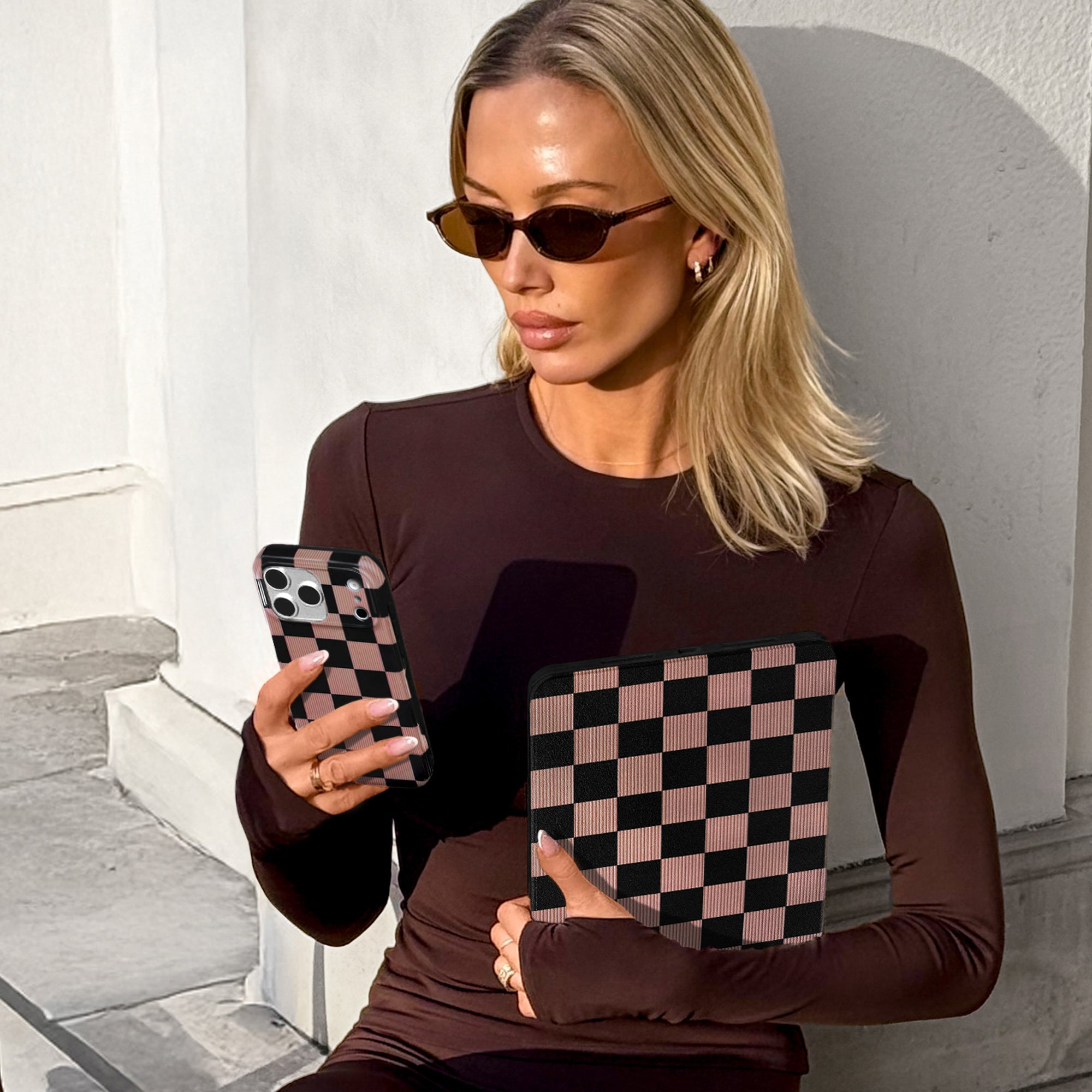 Elevate your everyday with this folio style iPad case featuring a Vegan Saffiano Leather exterior, 3 adjustable stand settings, and a charging compatible stylus holder*.
