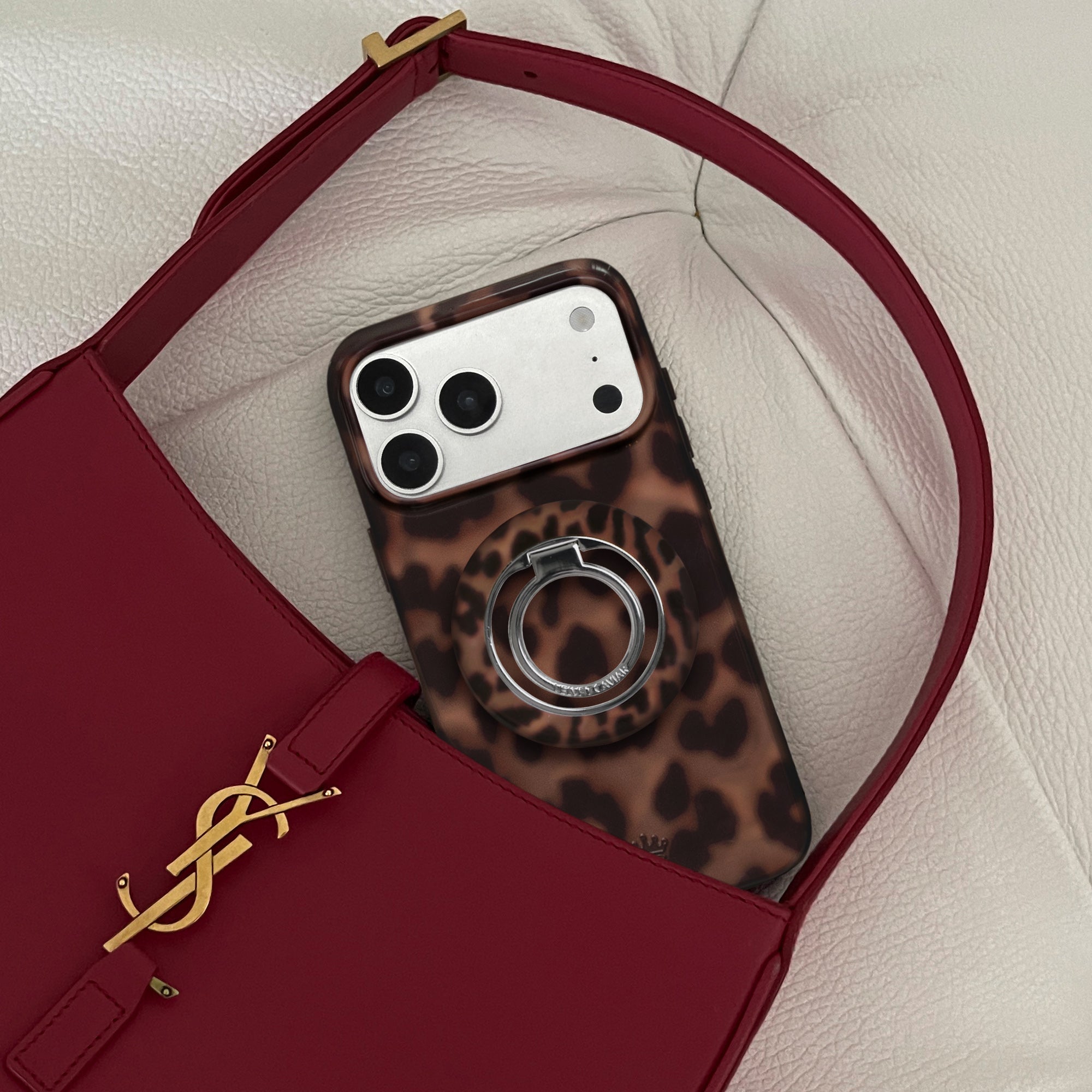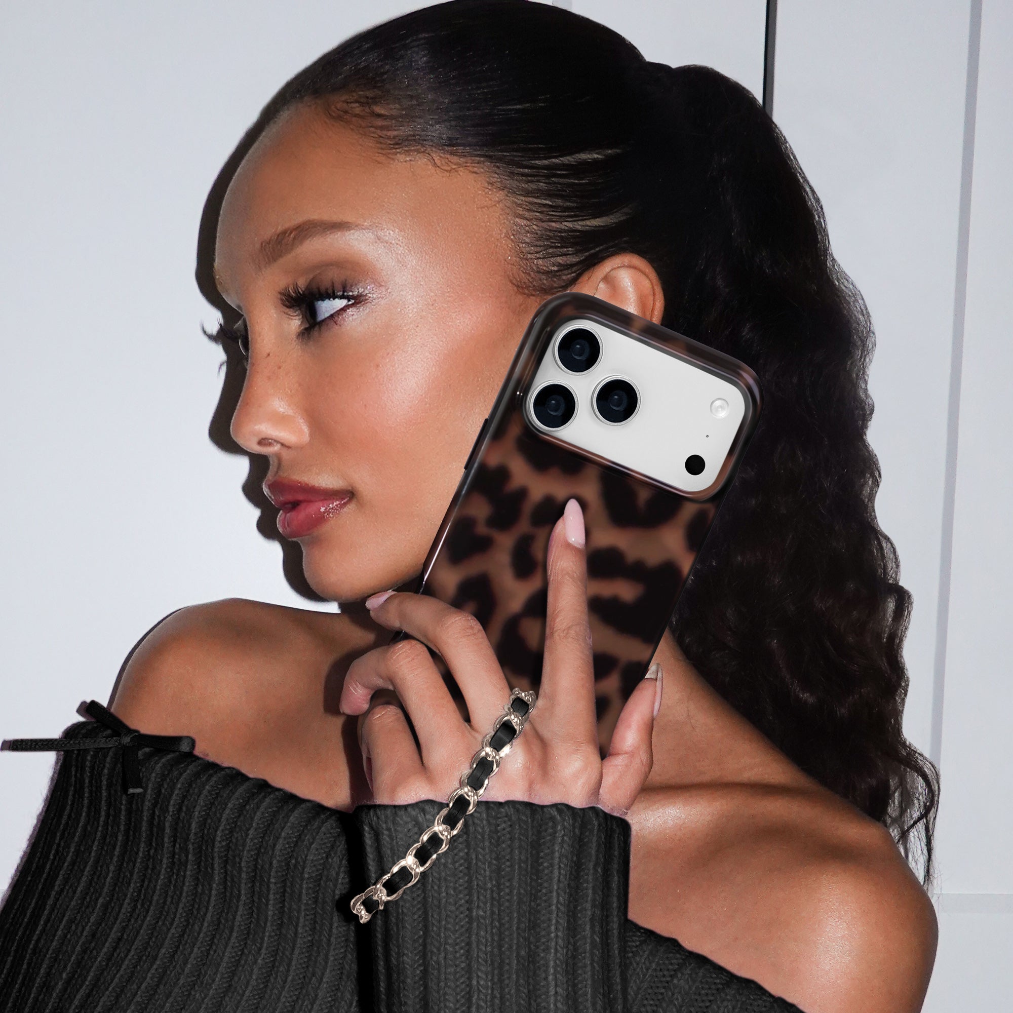 Instant It Girl! Turn headsin this glossy MagSafe case featuring deep brown leopard spots on a dimensional chocolate brown base.
