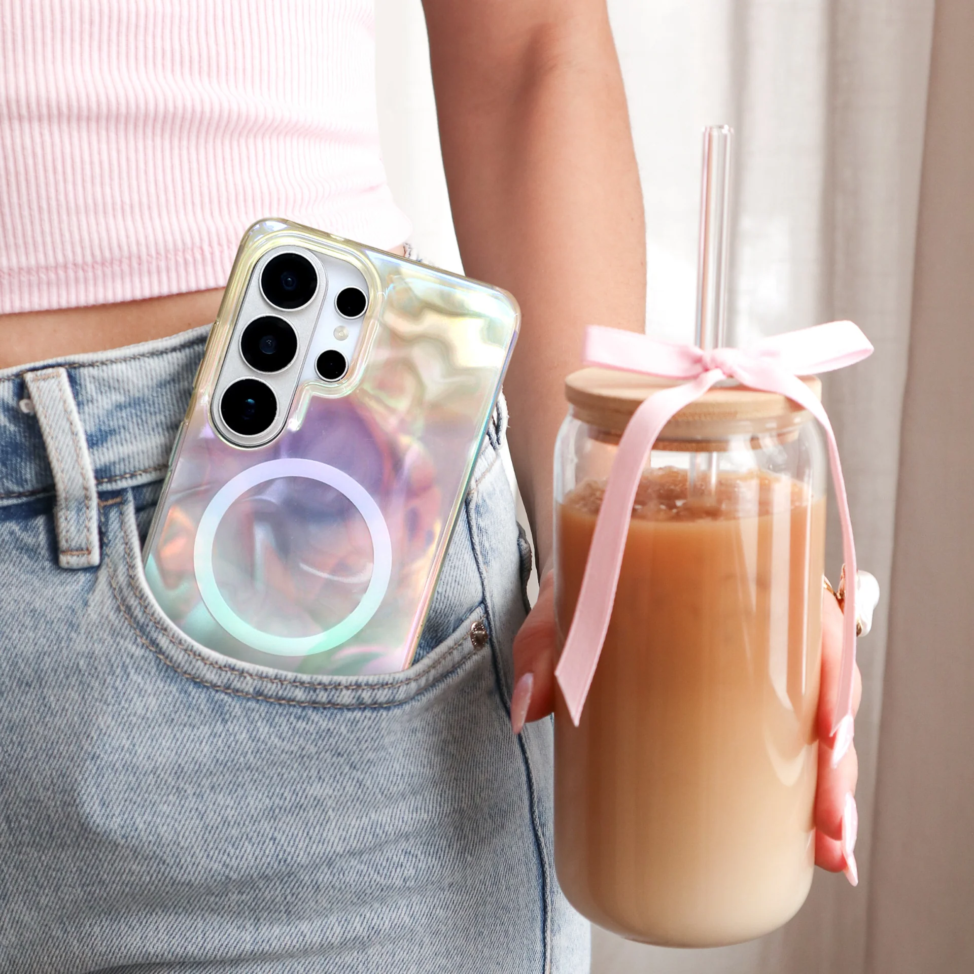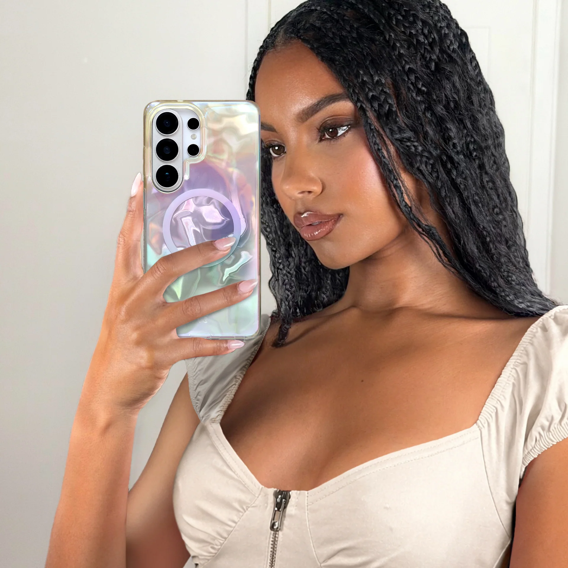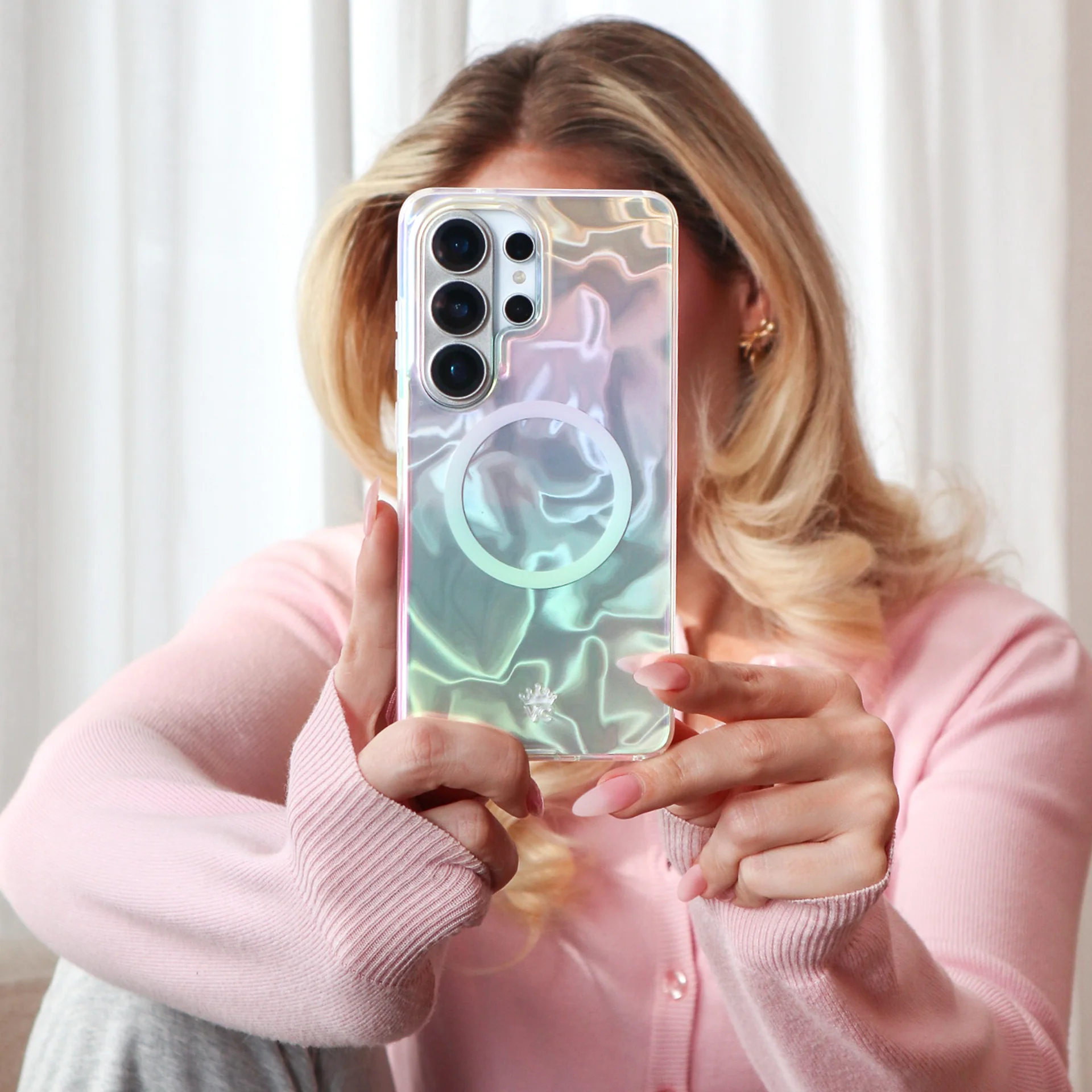 Samsung Exclusive! This protective eye-catching phone case features an opalescent holo wave effect that’s out of this world.