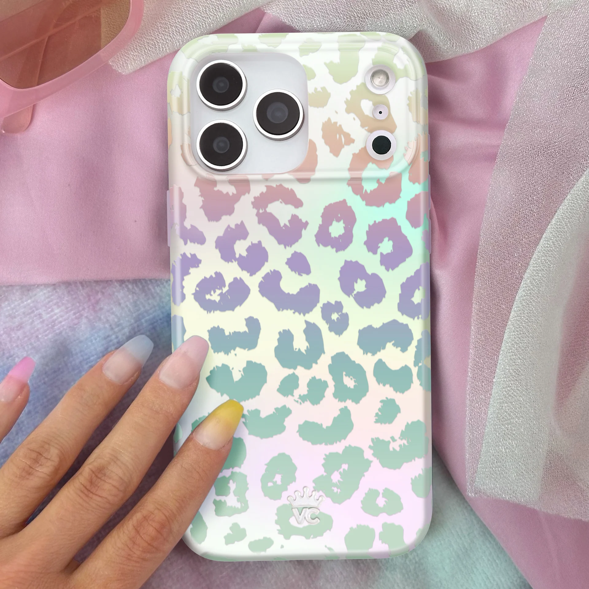 This Collector's Edition MagSafe phone case features glossy leopard spots on an iridescent opal base.